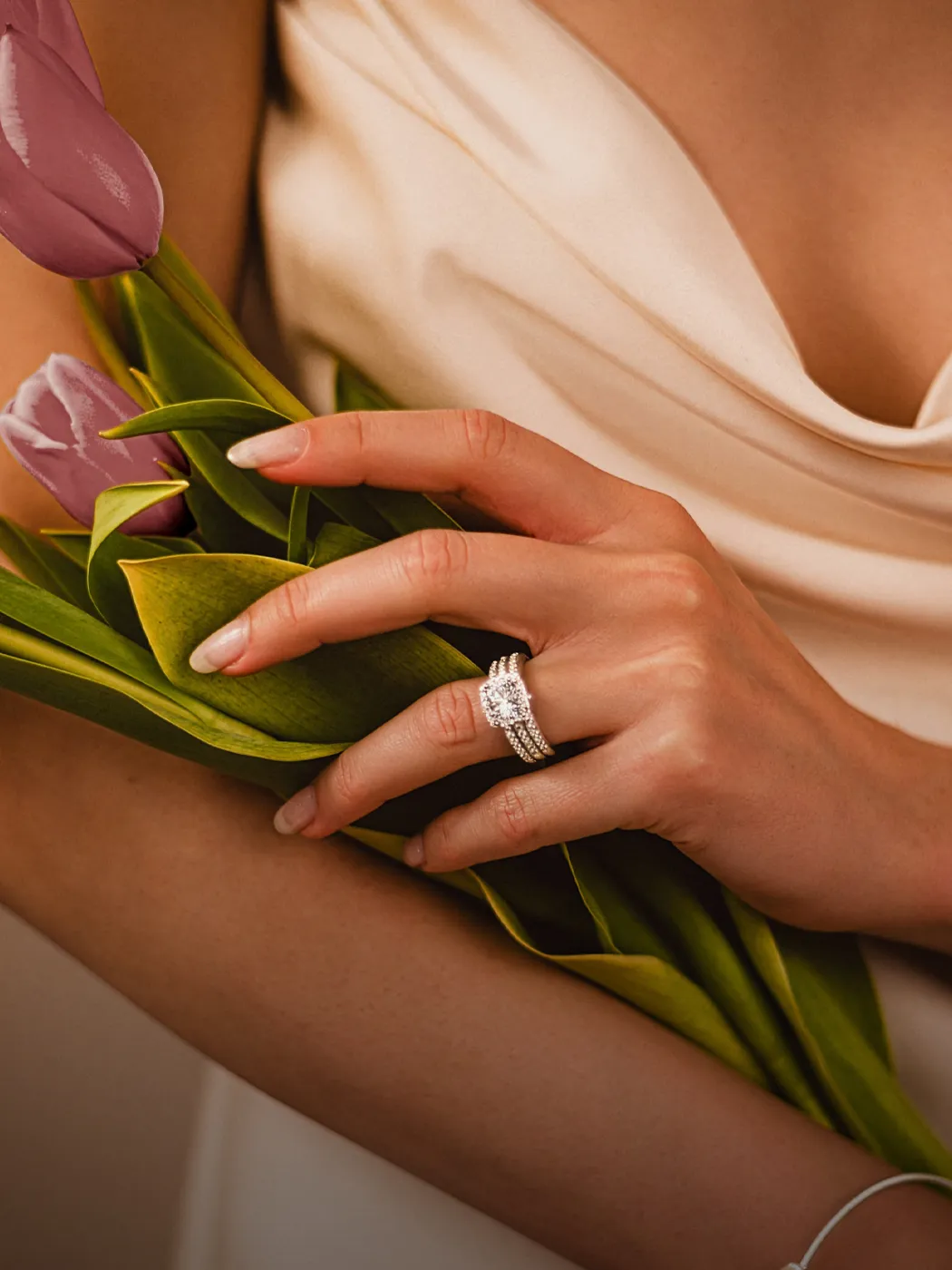 Lab grown diamonds are real diamonds in every sense of the word, sharing the same brilliance, hardness, and fire as natural stones. The difference? With lower production costs, lab grown diamonds give you significantly more size and quality for your budget, meaning you can say yes to a larger stone, a better cut, or a more intricate setting without compromise.